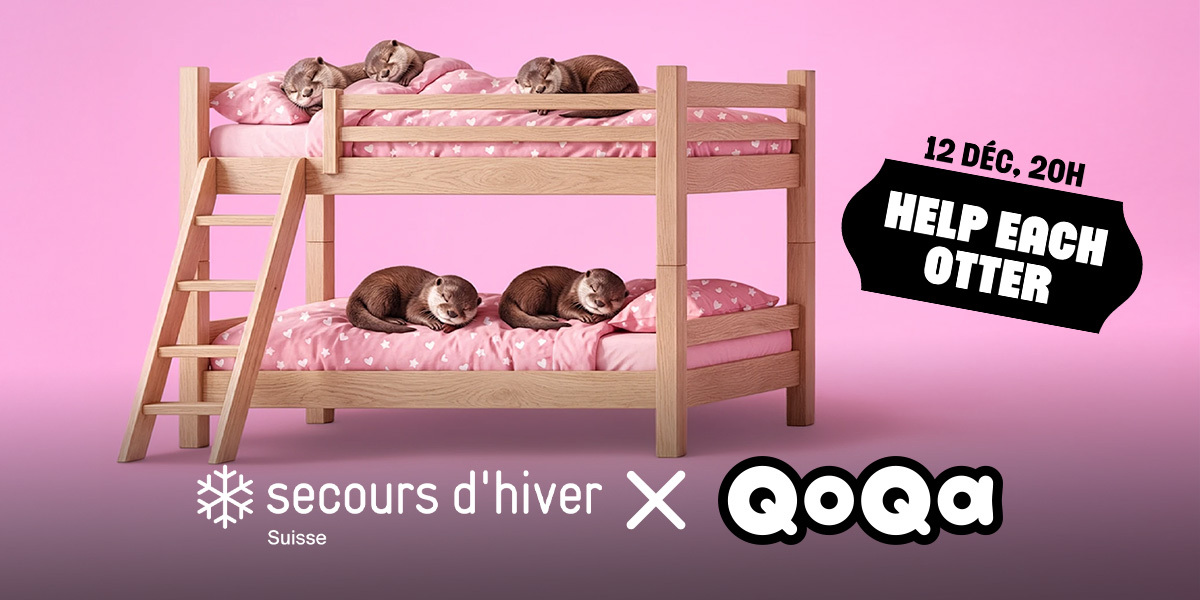 QoQa a fêté ses 20 ans ! Cela méritait d'être célébré. Outre de nombreuses offres intéressantes pour la communauté des loutres, QoQa a lancé le 12 décembre 2025 une collecte de fonds au profit du projet "Aide au Lits ", en faveur du Secours d'hiver sous la devise « help each otter ».